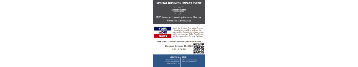 Join us on Monday, October 20th at 6:00 PM to meet the Jerome Township Trustee Candidates and learn about the Jerome Fire Department Levy along with the Jonathan Alder Bond Issue for the upcoming General Election.
